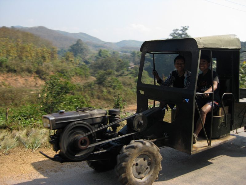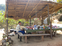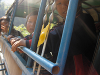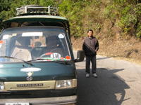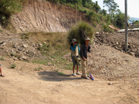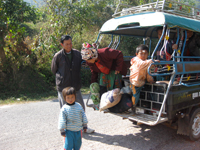 しばらく走り、アカ族母子をおろしミスターKHANは値段交渉中。母子たちはおつりに不満らしい。