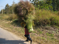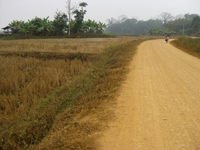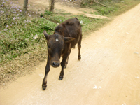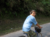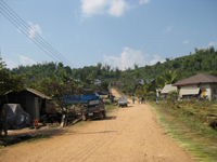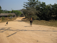 脇道をひたすら走り続け、ランテン族の村を通り過ぎたあたり、前から歩いてきたきた若い村人に止められました。