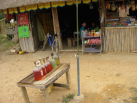 モト用のガソリンがガラスビンに入れられ店先で売られてます。
