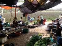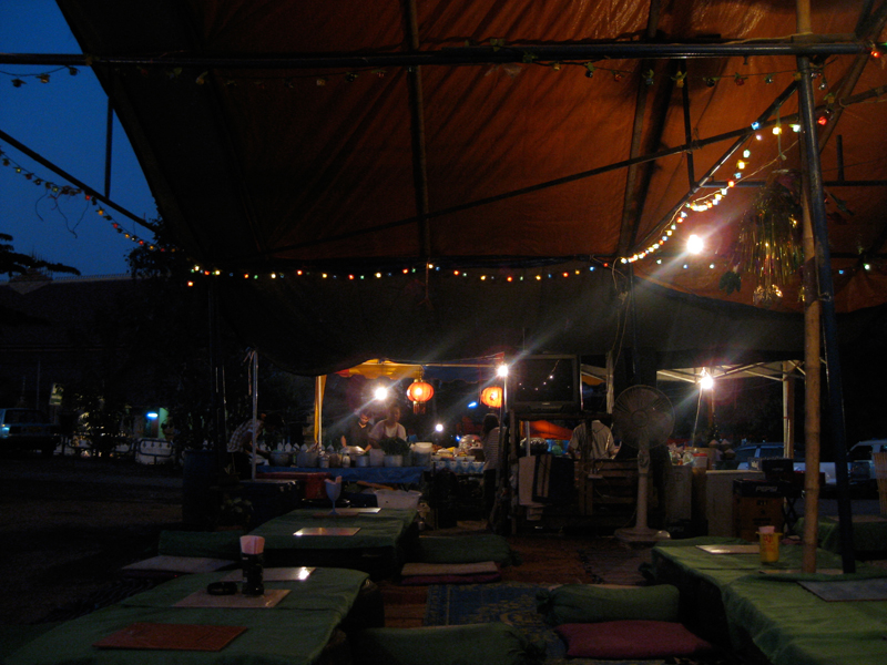 (ラオポップの大爆音はGH近くの朝市でもおなじみ。まっ暗いうちからズンドコ系のベース音が森とゲストハウスをふるわせてます。)