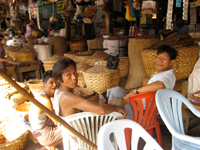 日本にもいそうなマーケットのシャンバッグ屋の親切なあんちゃん。