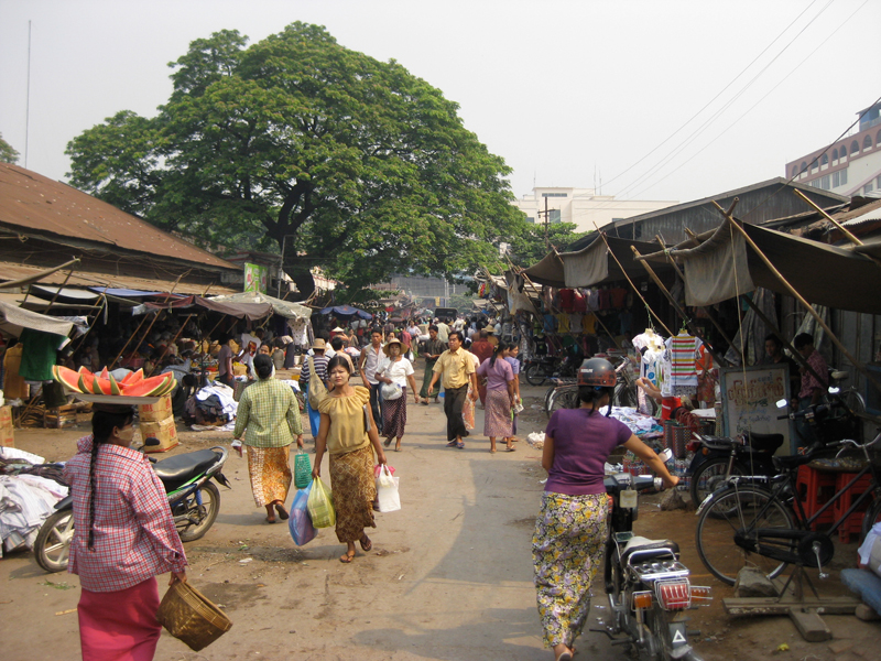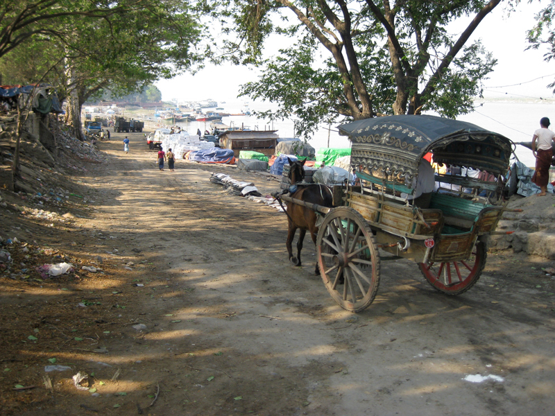 街の西を流れるエヤワディー川沿い。
