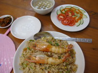こころカフェのエビのせフライドライス。うまい!