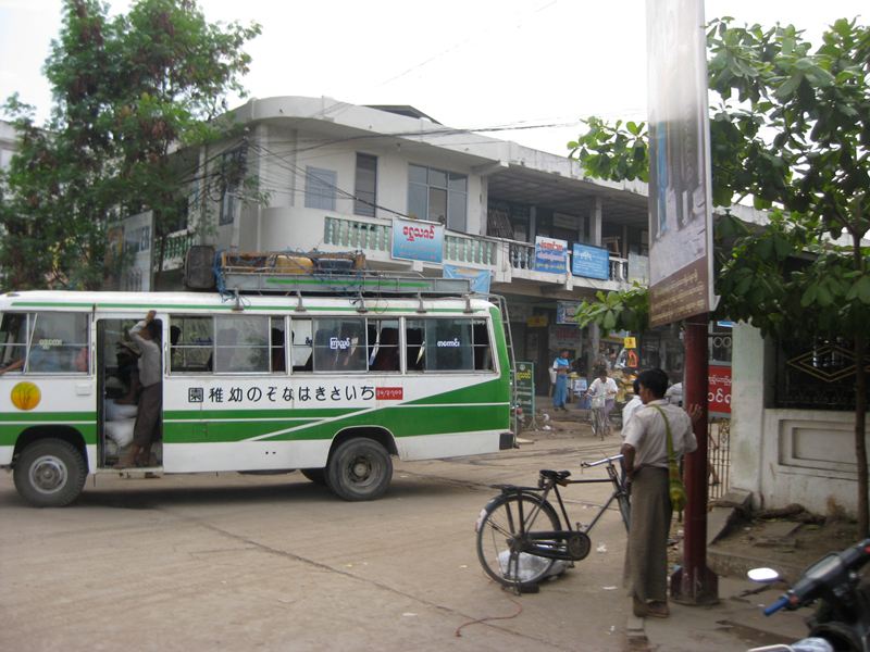 クルマは日本車だから右側通行の右ハンドルがミャンマー流。追い越しなんか超怖い。