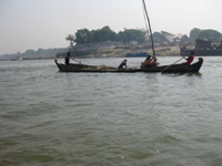 生活を乗せて手漕ぎ船が行く。乾期の終わりの今でも川の水量は多い。この船でこの流れを遡る。おそるべき操船技術とマンパワー。