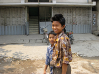 基本、明るく親切なミャンマー人。レンタルバイク屋の場所を丁寧に教えてくれた男の子のような女の子とそのお友だち。